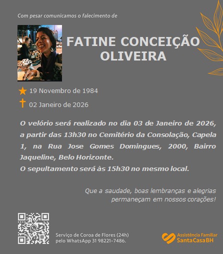 Com enorme pesar informamos o falecimento de Fatine Conceição Oliveira, doutoranda do nosso PPG.